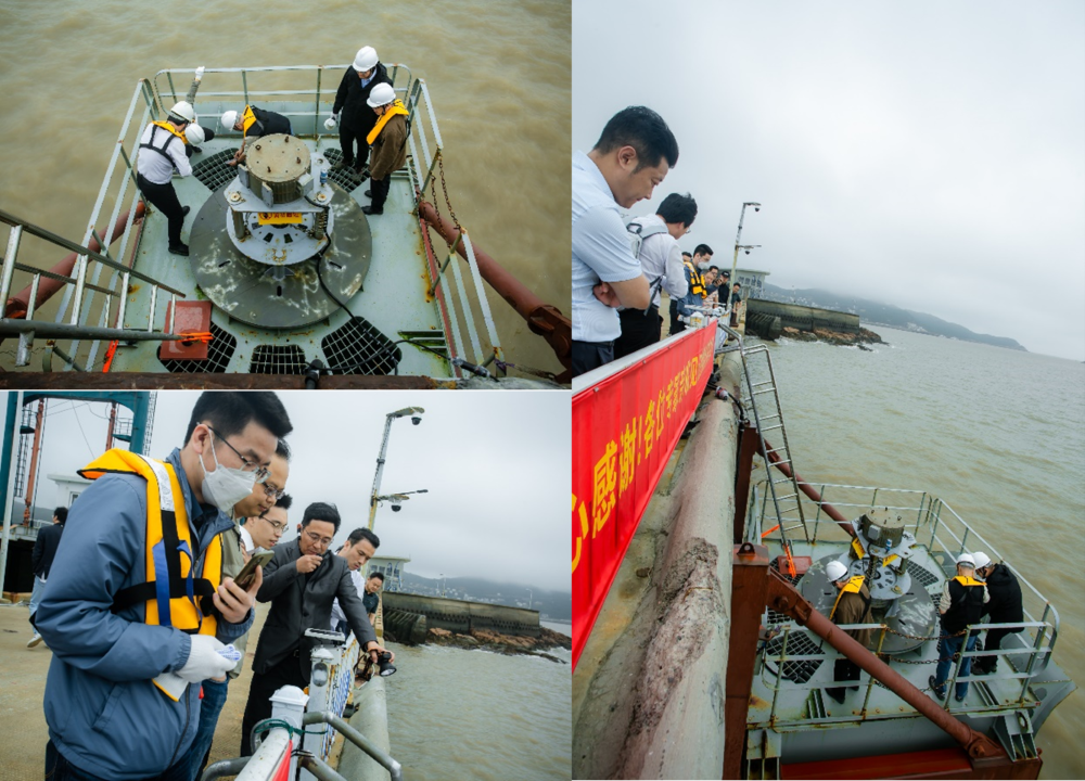 After arriving the pilot site, although there was a strong wind, it did not affect the enthusiasm of the experts and professors. They climbed the inclined ladder down to the equipment to inspect and observe the technical details of the generator. Henry and his staff also gave a detailed introduction to the visitors on site.